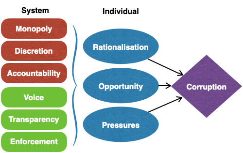 Opportunities for corruption are created when systems permit monopoly of power with opaque decision-making and poor accountability.